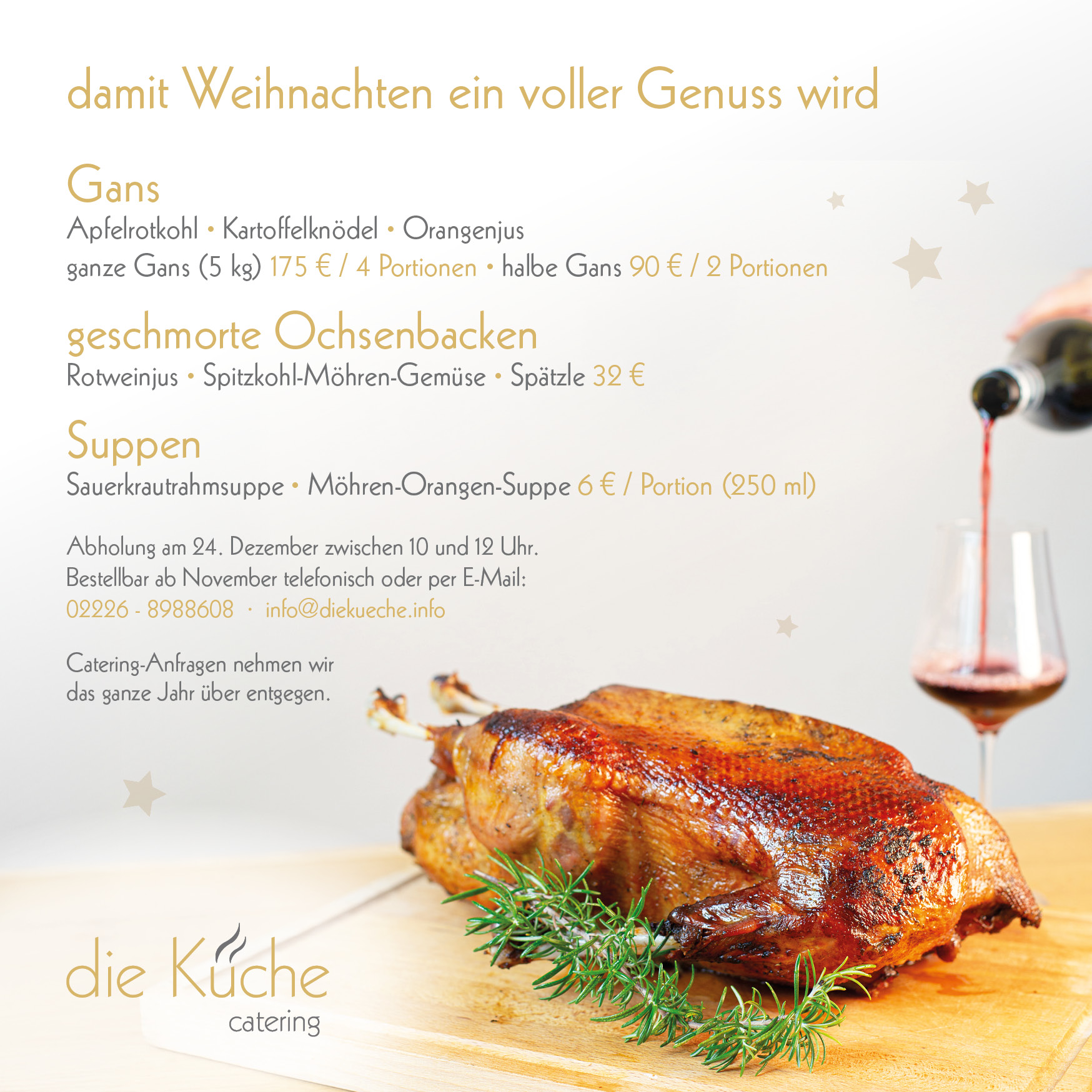 Braucht ihr sonst noch irgendwas? Glühwein oder Wein? Legen wir euch gerne dazu!